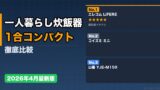 | 保温機能 | × | ○(60分) | × | ○(60分) |