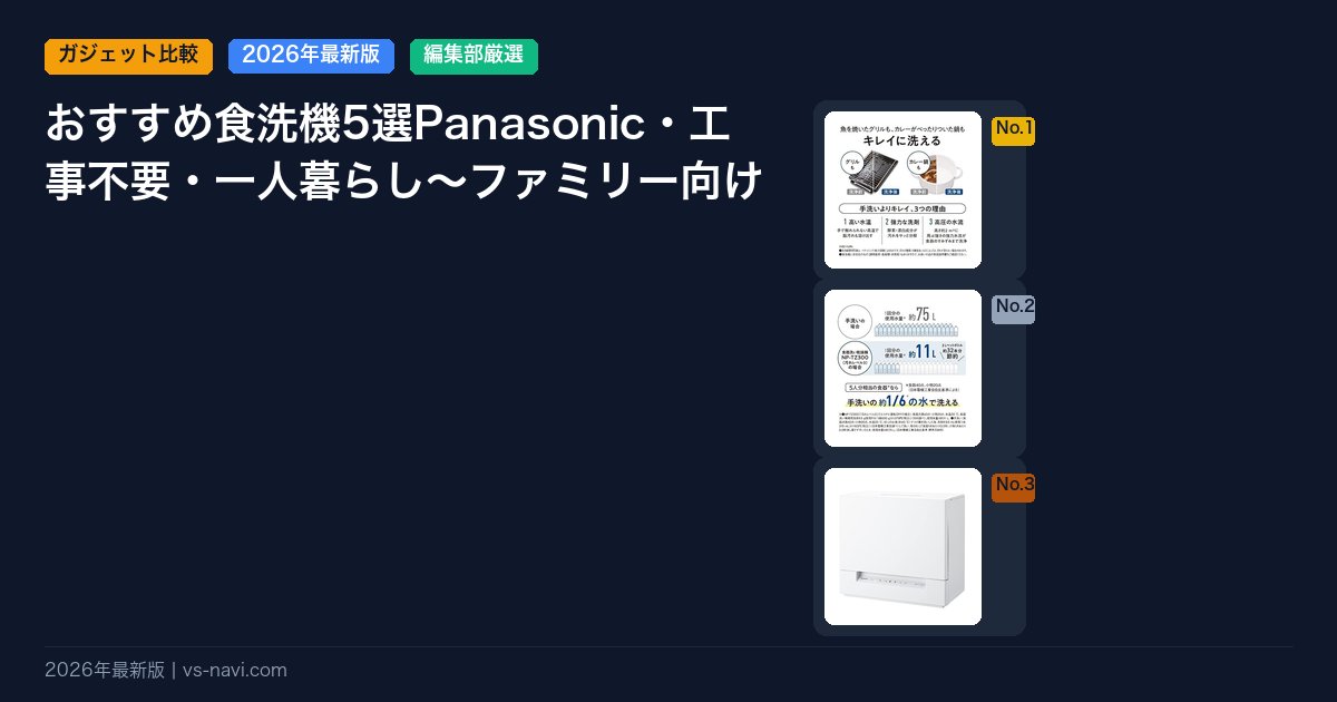 「食洗機が欲しいけど、工事が面倒」「一人暮らしのキッチンに置けるの?」——そんな悩みを解決するのが2026年の最新食洗機です。この記事では据え置き型・タンク式・スリムタイプの人気5モデルを徹底比較。設置条件、洗浄力、ランニングコストまで詳しく解説します。