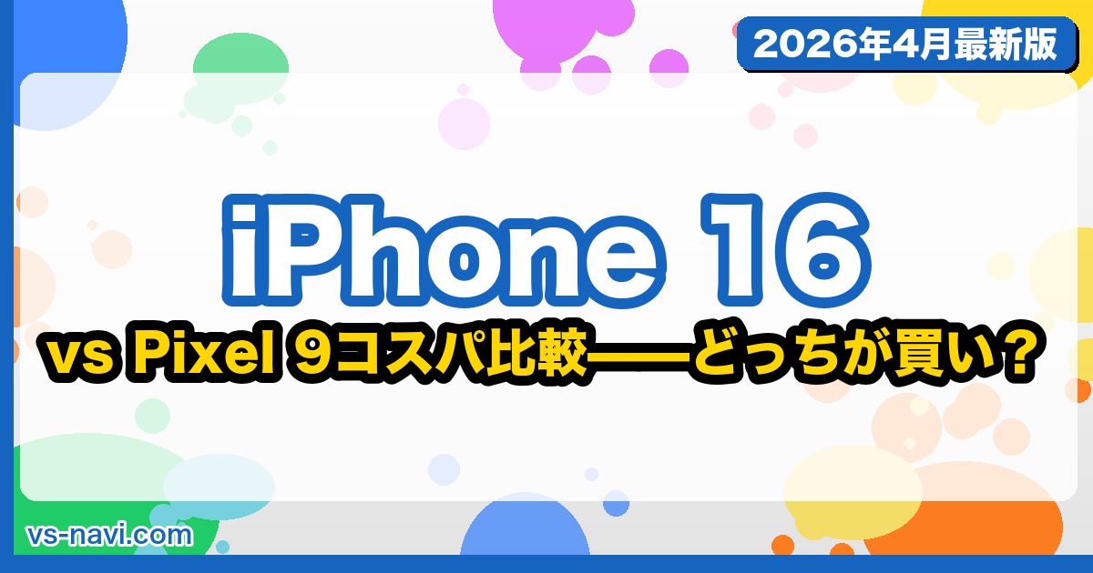 「iPhone 16とPixel 9、コスパが高いのはどっち?」——2026年4月時点でスタンダードモデルの定番として最もよく比較されるのがこの2台です。どちらも¥120,000前後で購入できる「ハイエンド入門機」。この記事ではスペック・カメラ・AI機能・長期使用コスパを徹底比較し、あなたに最適な1台を断言します。