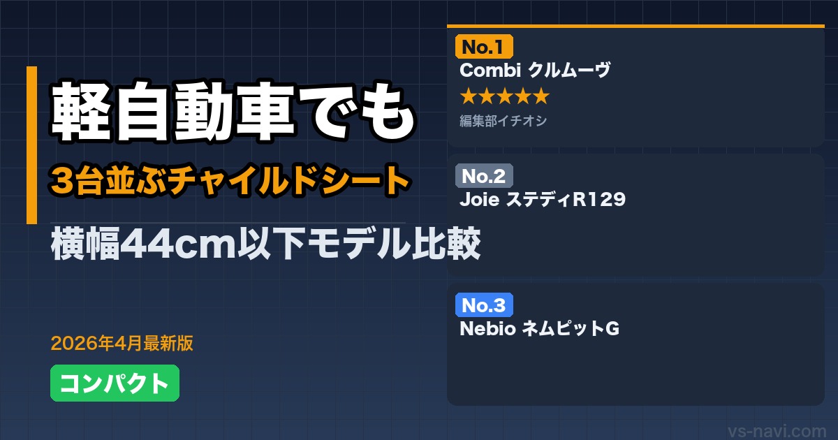 3人目の子どもが生まれて「軽自動車に3台つけたい」と思っても、メーカーの公式サイトに横幅の情報はなかなか出てきません。実際に買ってみたら並ばなかった…という失敗談はSNSでも頻繁に見かけます。この記事では横幅44cm以下に絞って本当に3台並ぶモデルだけを比較しました。