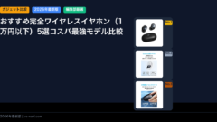 ノイズキャンセリングの効き目は搭載マイクの数と処理アルゴリズムに依存します。Sony WH-1000XM5やBose QuietComfort Ultraは業界最高峰。1万円台のANCも進化していますが、飛行機や電車のノイズを消す力には明確な差があります。