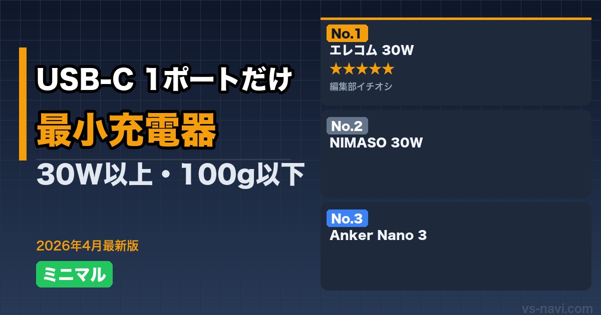 3ポートや4ポートの充電器は確かに便利だが、結局1台しか充電しない人にはサイズと重さが無駄。USB-C 1ポート・30W以上ならiPhoneもiPadもMacBook Airも急速充電でき、ポケットに入るサイズで持ち運べます。
